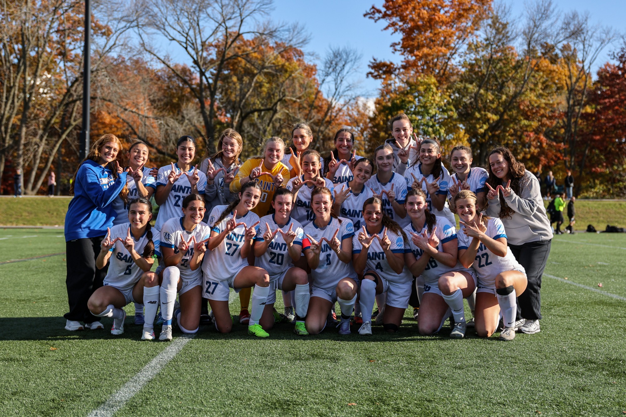 Neither team was able to score in the first half, as each team's goalkeeper made three saves apiece. Emmanuel had the best chance in the opening 45 minutes as freshman Melanie Hoffman (Topsham, ME) clanged a shot off the crossbar midway through the period.