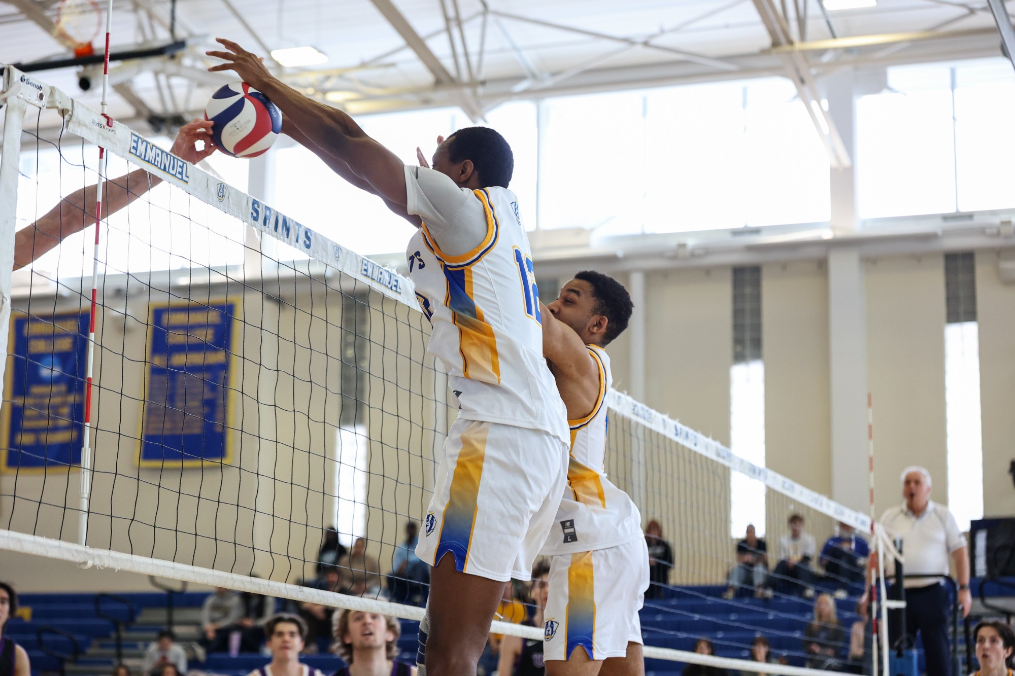 The Saints started out the third set with a bang as seniors Keoni Rabaino (Tucson, Ariz.) and Cam Todd (Los Angeles, Calif.) combined for a powerful block at the net to propel Emmanuel to an 8-5 edge early on. The hosts extended their edge to 16-8 with senior Tyson Reitz (Granite Bay, Calif.) grabbing two straight aces for the Saints in the process. Junior Mike DelSignore (Narragansett, R.I.) jumped in on the action with a key block at the net as Emmanuel won the set, 25-11 and took the match in straight sets.