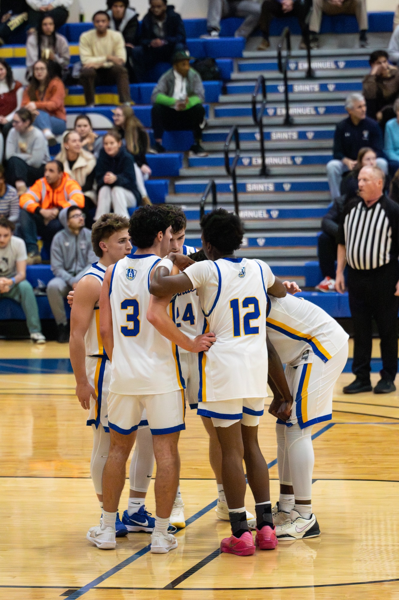 Junior captain John Clay (Westport, Mass.) sparked the Saints, scoring two quick hoops coming out of the break. Davis would drain a triple from the top of the key to cut Emmanuel's deficit to six at 44-38 and 14:30 remaining in the game.