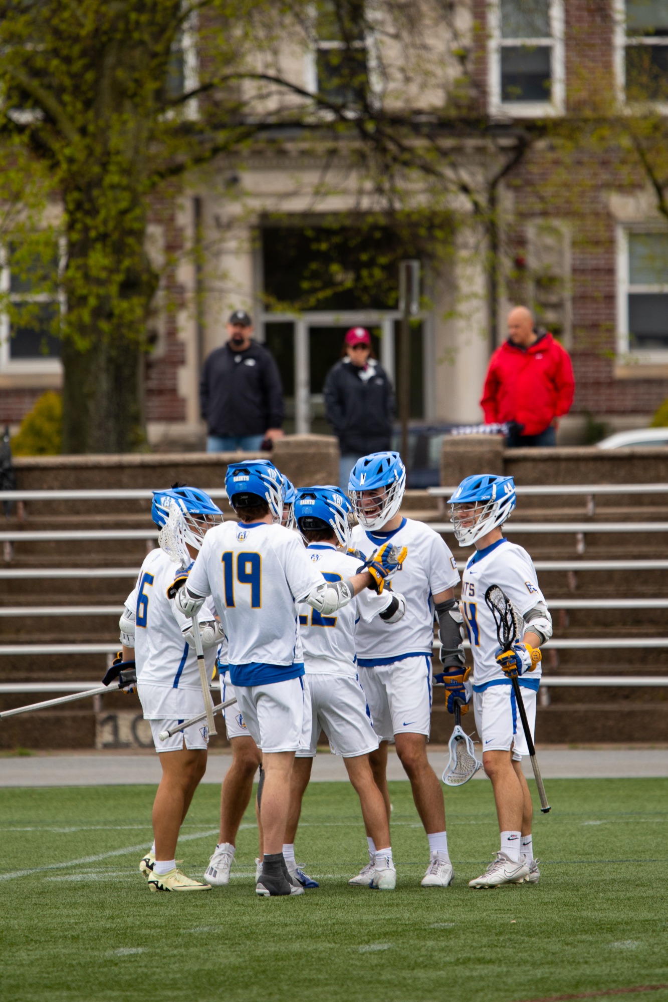 Jake Pickett (Stratham, N.H.) won 11 of the 13 face-offs he attempted for the Saints, who also saw a 5-for-5 effort from Michael Sousa (Cranston, R.I.), a 4-for-4 effort from Tony Marcella (North Bridgton, Maine), and a 4-for-6 effort from Justin Kelley (Collegeville, Pa.). Pickett led the Saints in ground balls with 11, while Max Mercier (Lincolnville, Maine) tallied a team-best five caused turnovers.