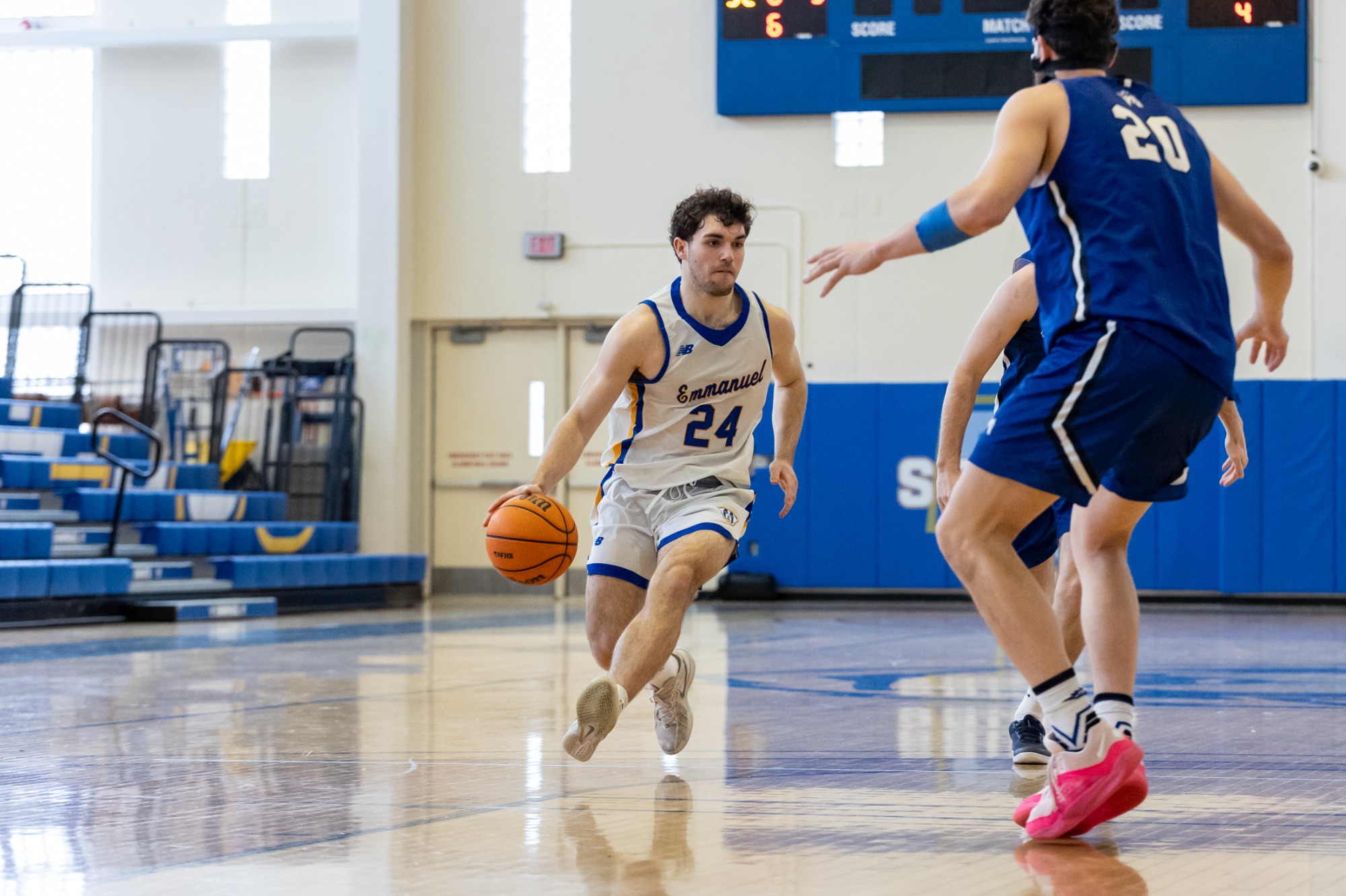 Emmanuel shot nearly 55% in the first half (18-for-33) and battled the Cadets to a 37-37 tie with 1:33 to go in the stanza. Down the stretch, Emmanuel's Dan Flaherty potted a free throw and Alex Minetti notched a layup with 29 ticks left on the scoreboard to create a 40-37 advantage.