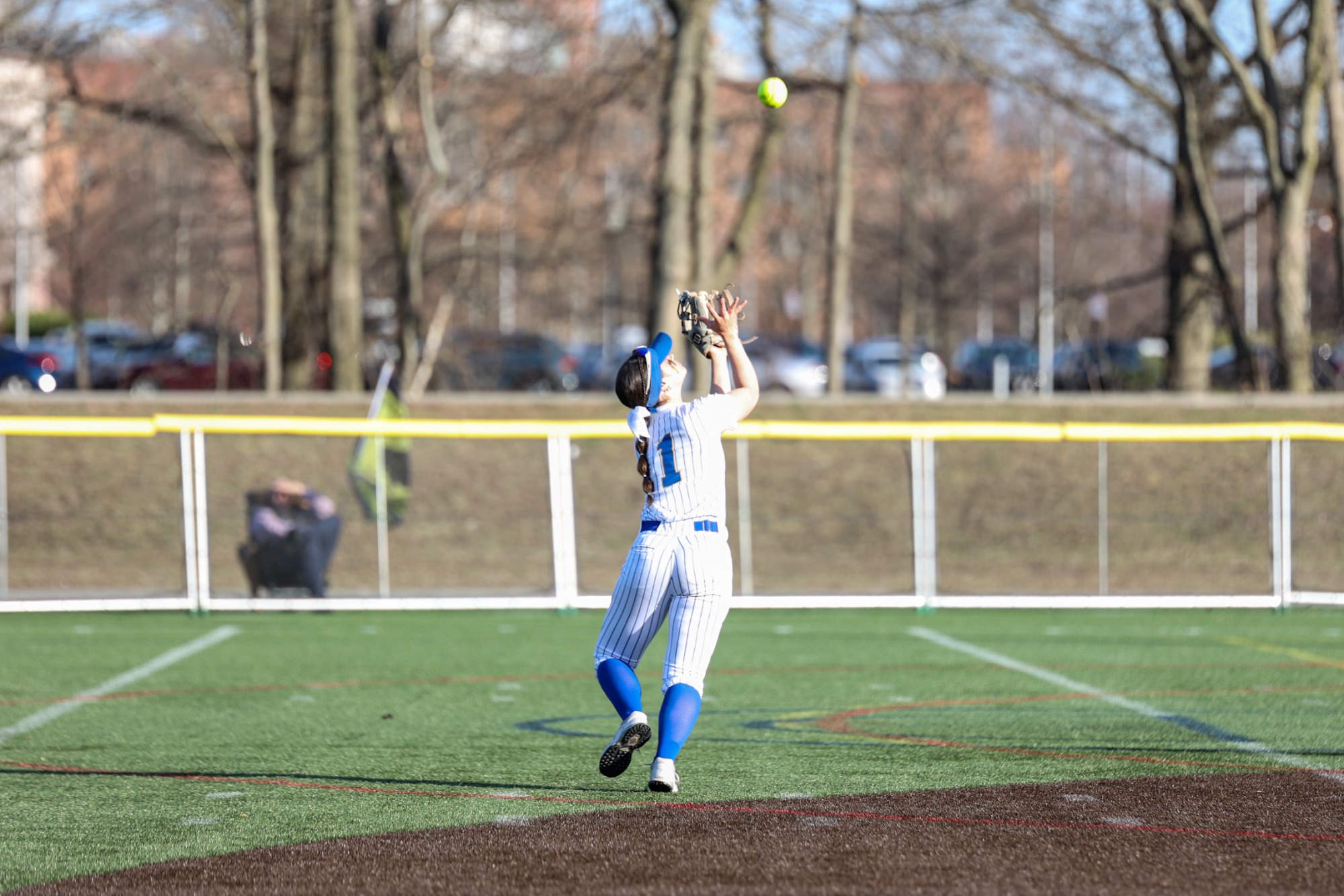 Junior Madison Marks (Edgewater Park, N.J.) earned the win for the Saints after hurling seven three-hit, shutout innings with seven punch-outs.